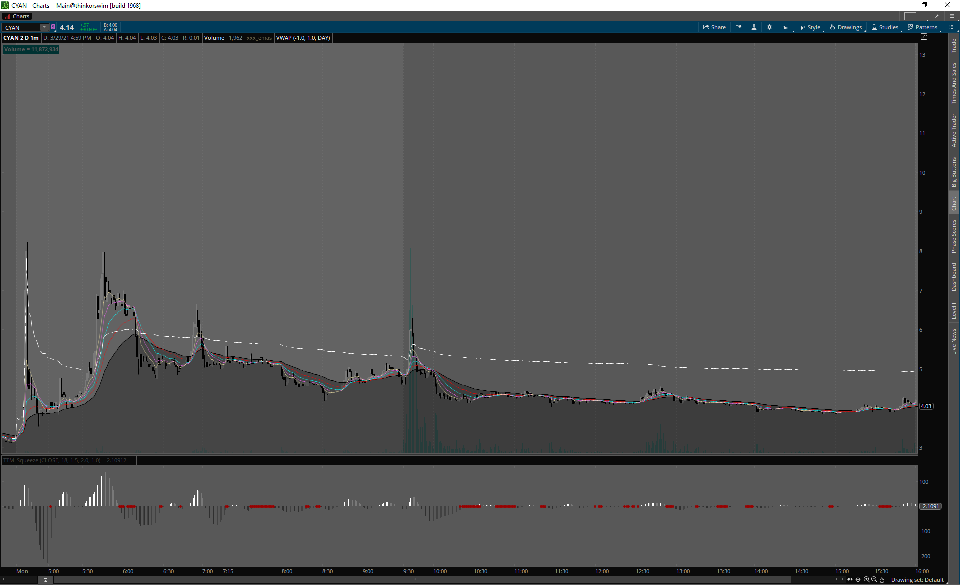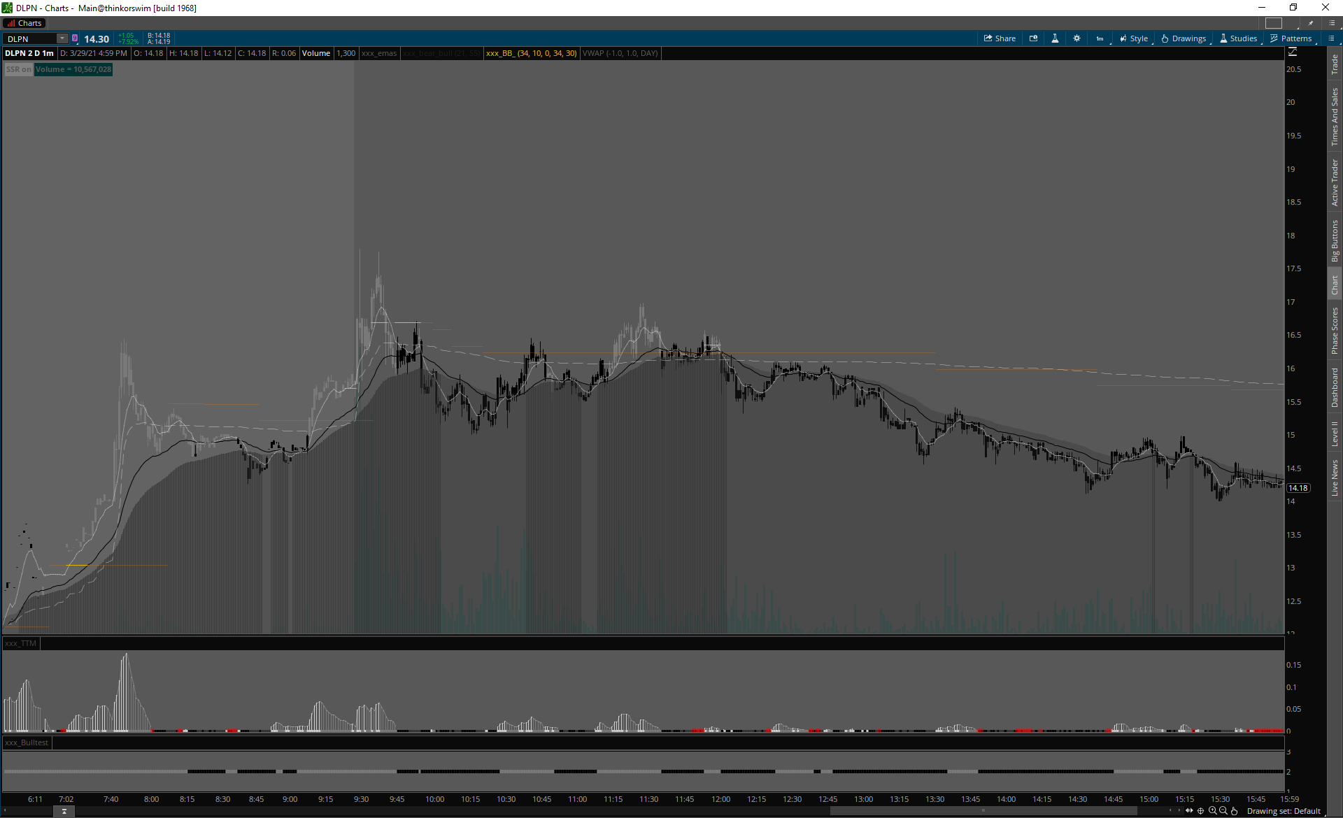 Home review 29.3.2021 29.3.2021CPHI CYAN DLPN HOFV SEAC ZKIN traderskedoupeMarch 29, 2021review Pokračujeme asi tam, kde sme skončili minulý týždeň. Väčšina tickerov hneď z openu failuje a len málo z nich dokáže reclaimnúť dôležité úrovne a udržať zisky na deň. Veľmi slabý pondelok.