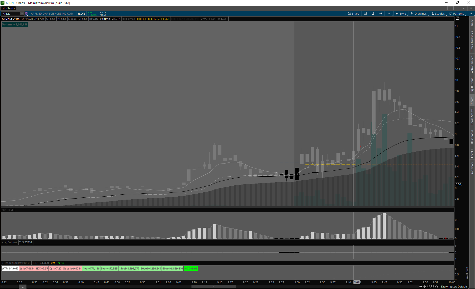 APDN slušnejšie volume, vstup v prvej polhodine obchodovania, bez výraznejšieho follow through.