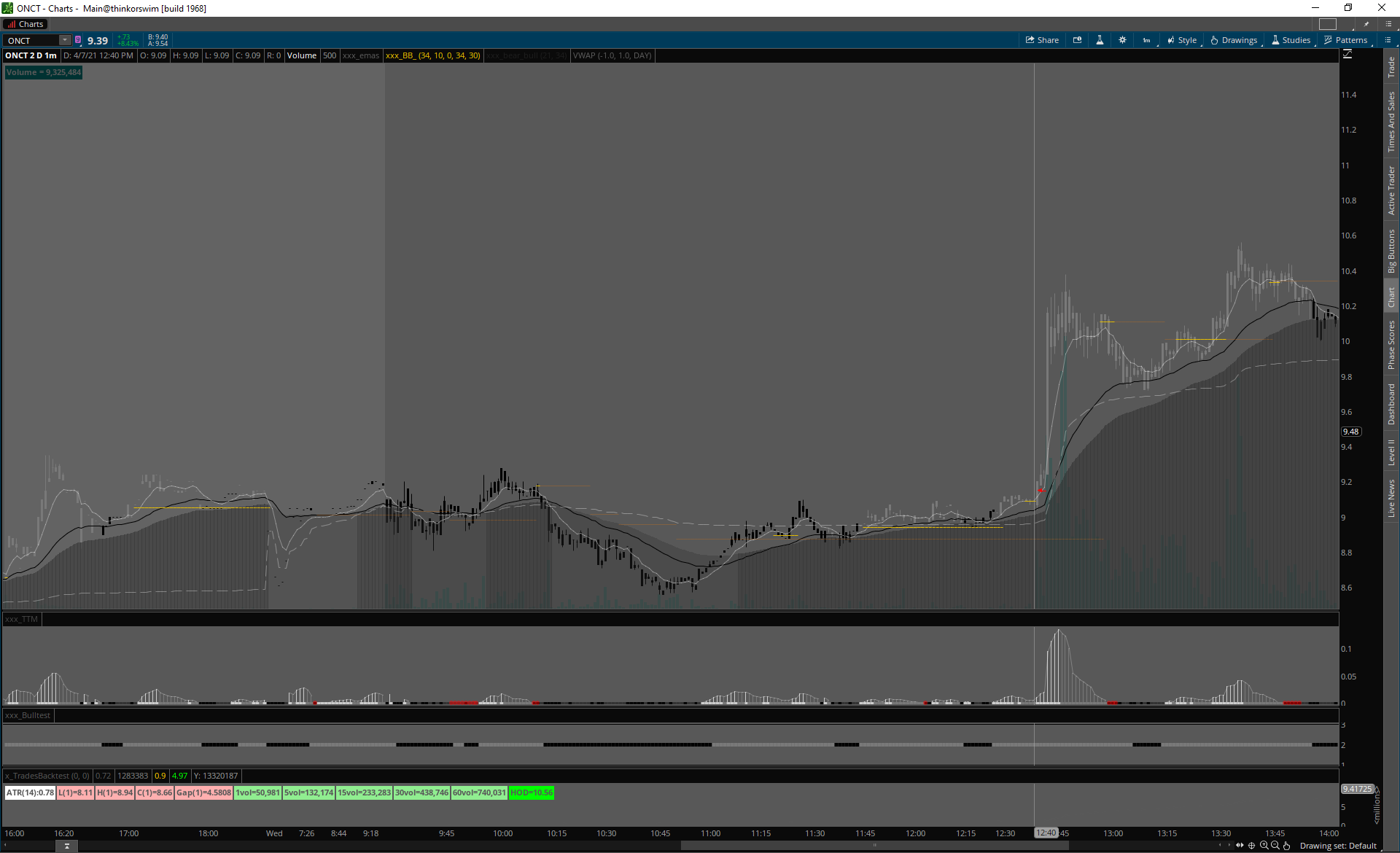 ONCT low volume signál, v prvej polovici dňa reclaim VWAP a supportu s veľmi slušnou palicou nahor. Instant $