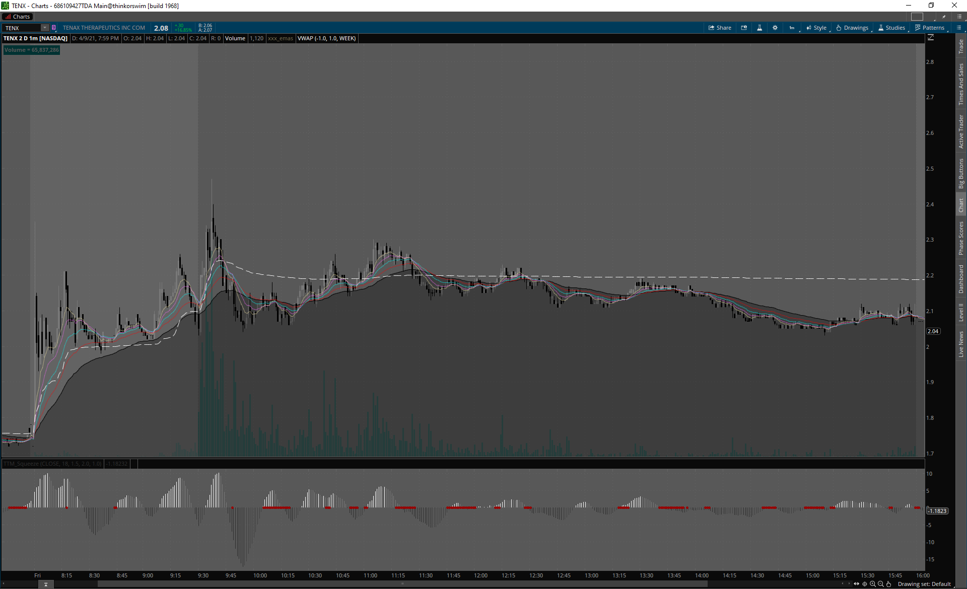 TENX neúspešný pokus o reclaim vwap v prvej polovici dňa