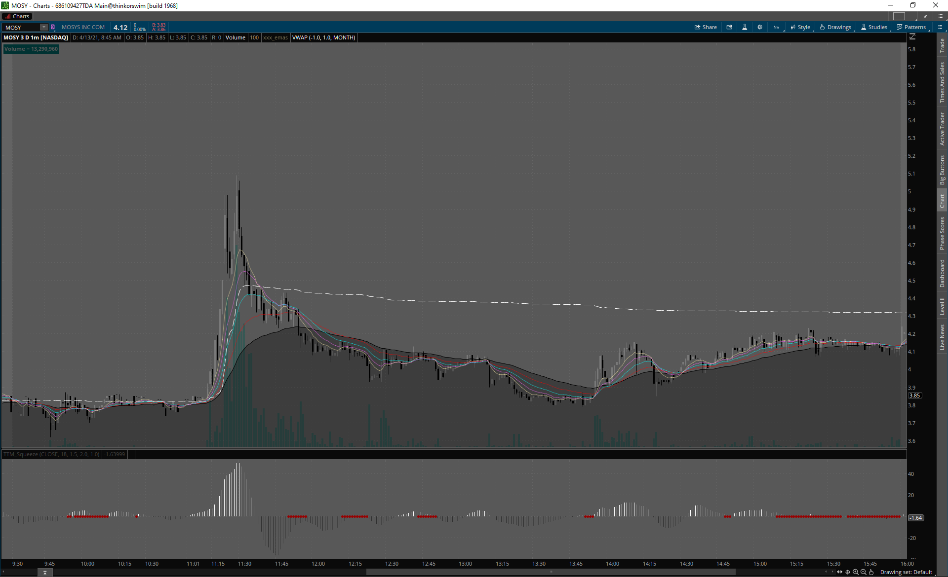 MOSY odpad kategória, pump and dump počas dňa.