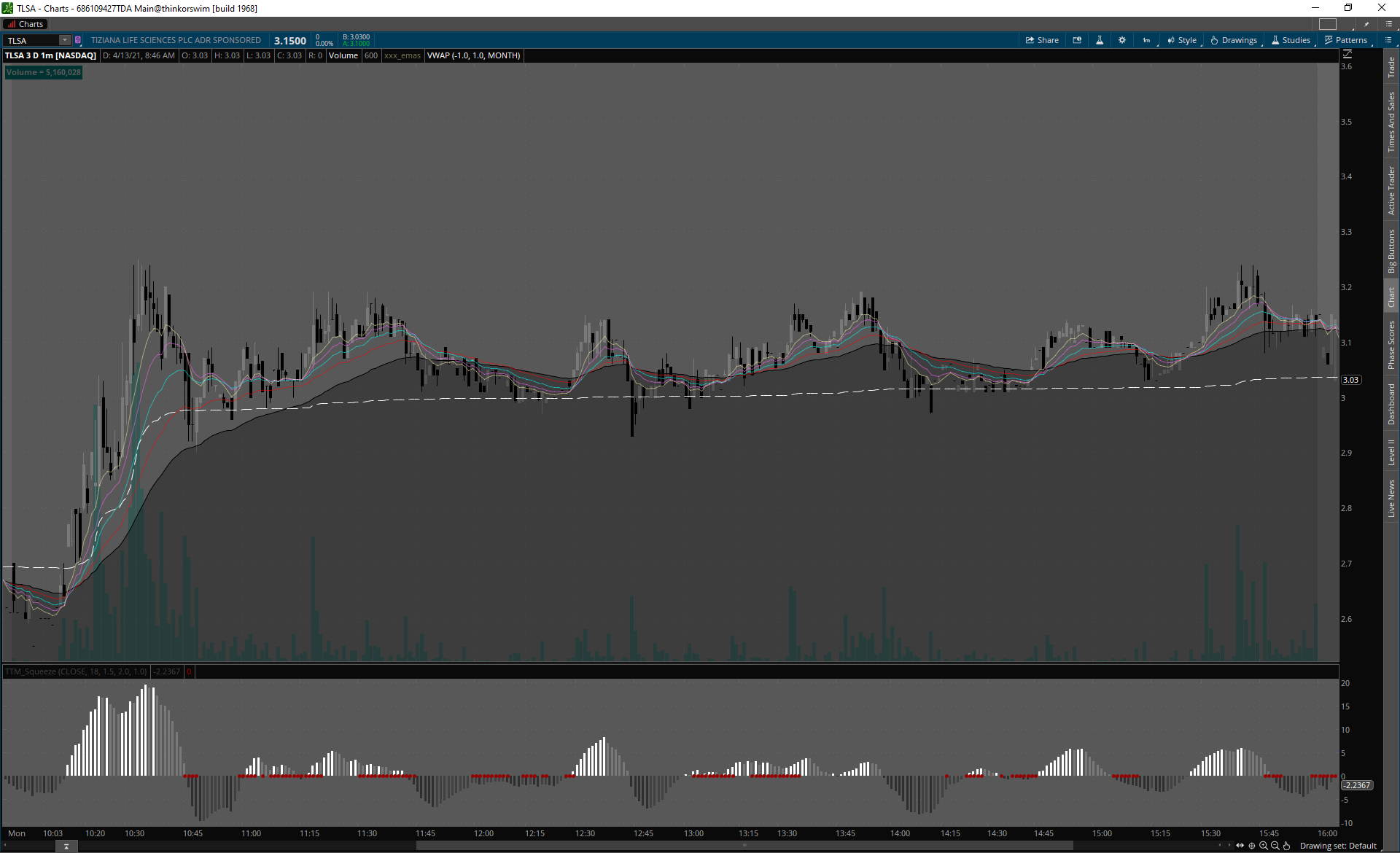 TLSA drží celý deň zisky, potenciálny day2 runner.