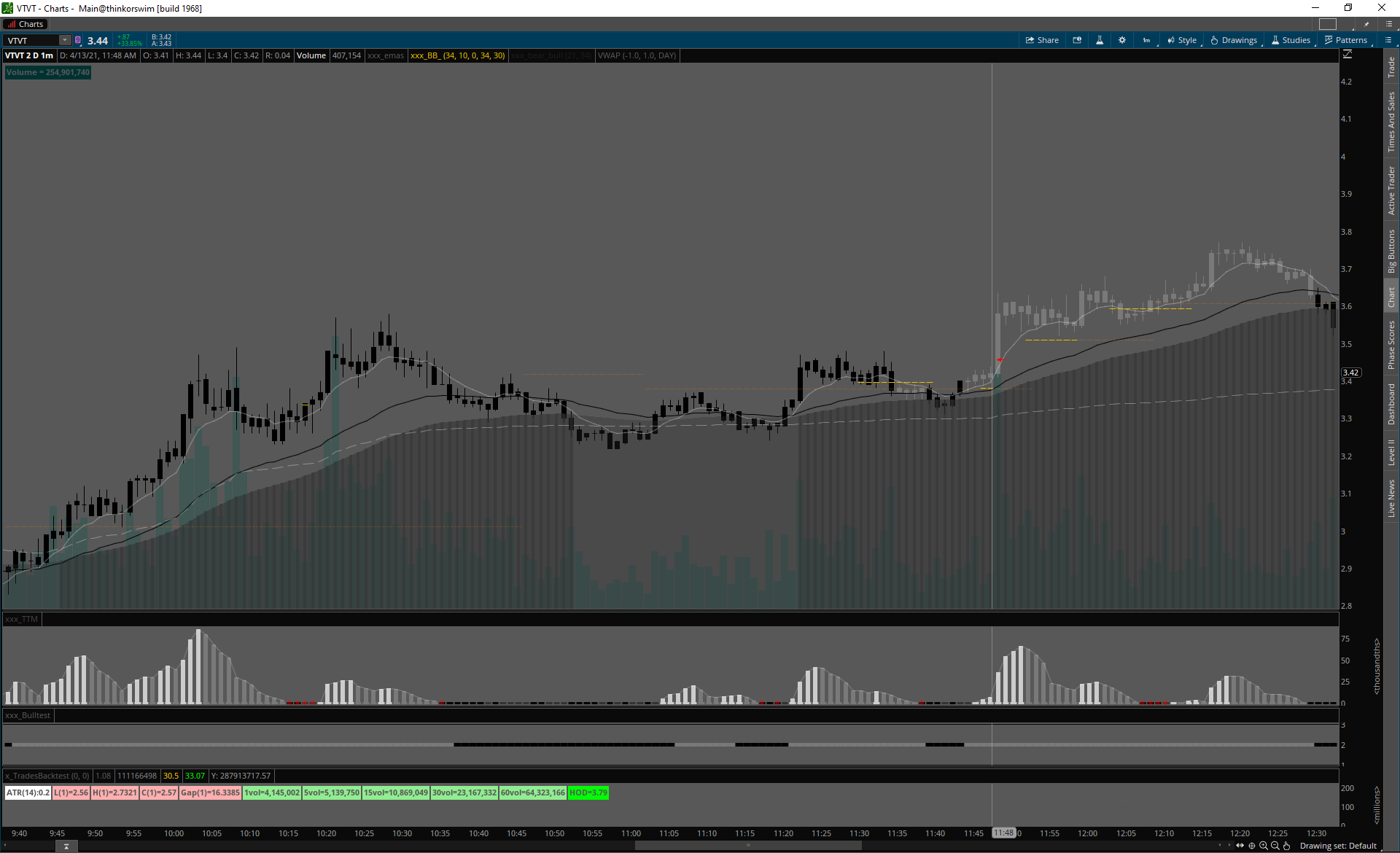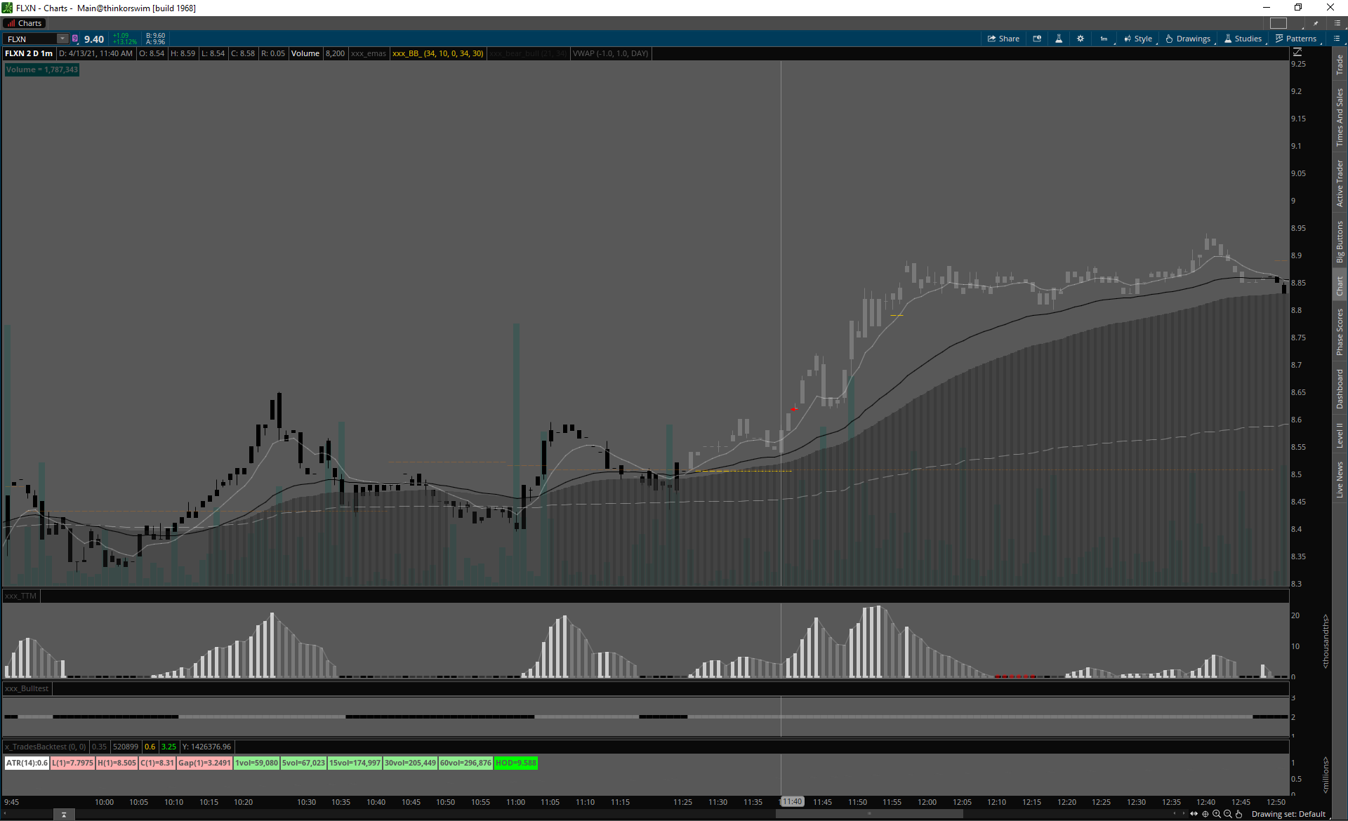 Home príležitosti 13.4.21 13.4.21VTVT FLXN traderskedoupeApril 13, 2021príležitosti Dnes dva signály, opäť bez A+.VTVT šialené volume, algo sa postaralo o slušnú akciu. FLXN slabé volume, veľké spready a institutional ownership cez 95%, ale follow through bolo slušné. vtvt 13.4.21 flxn 13.4.21