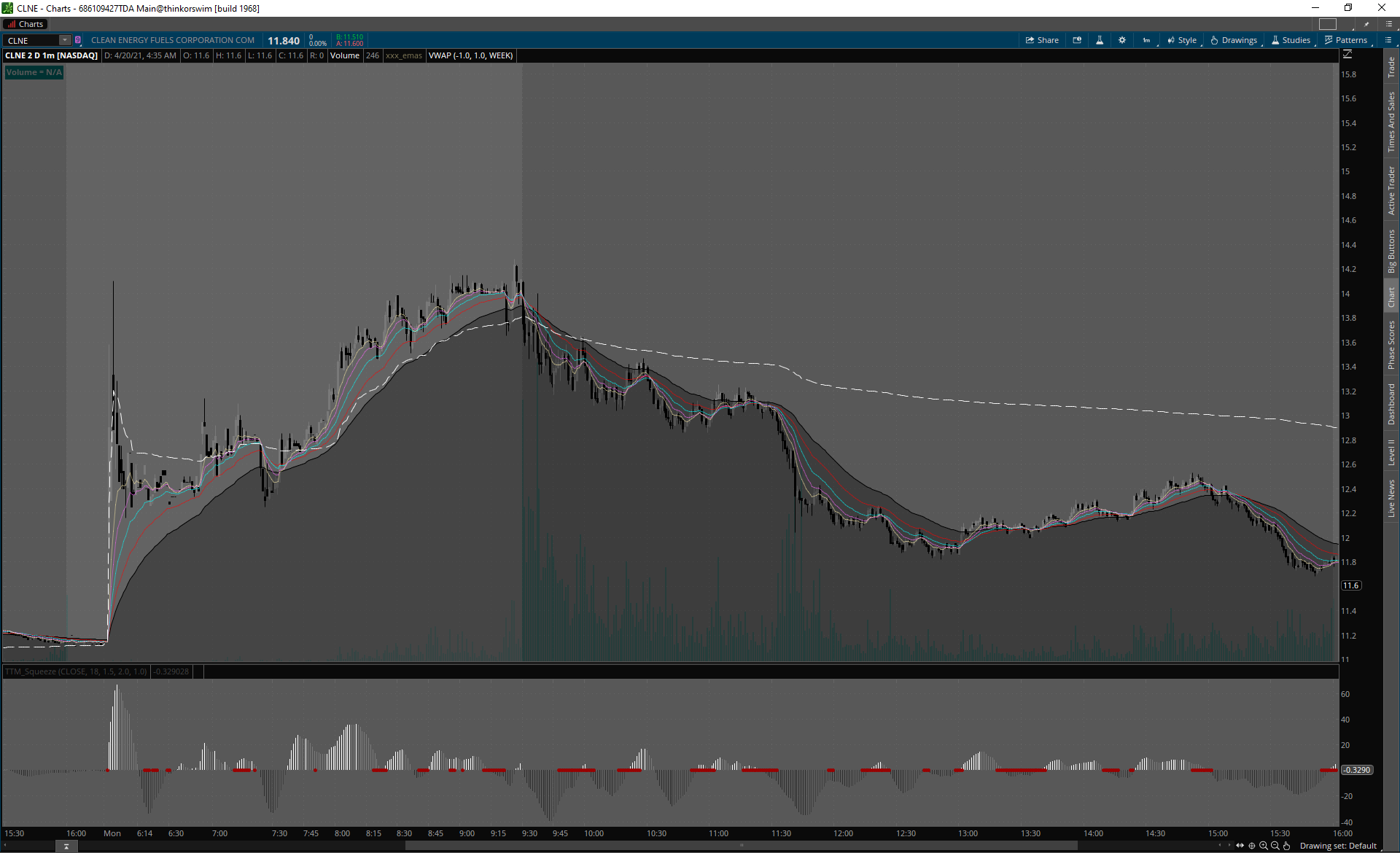 CLNE typical, gap up, push do openu, výplach a all day fade.