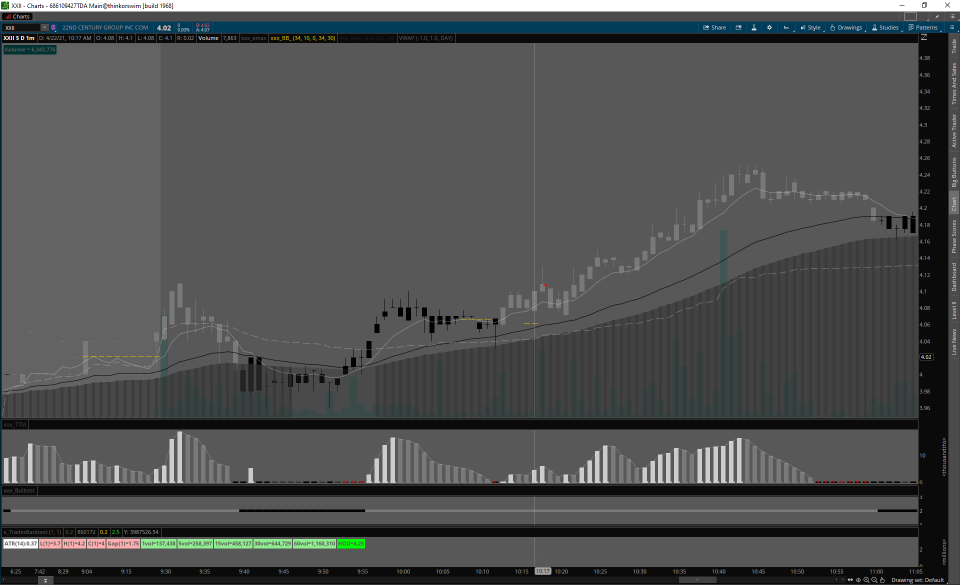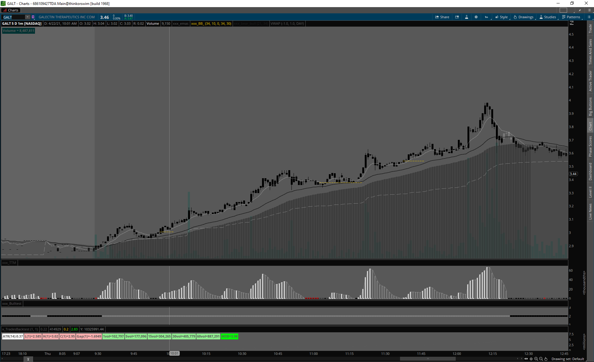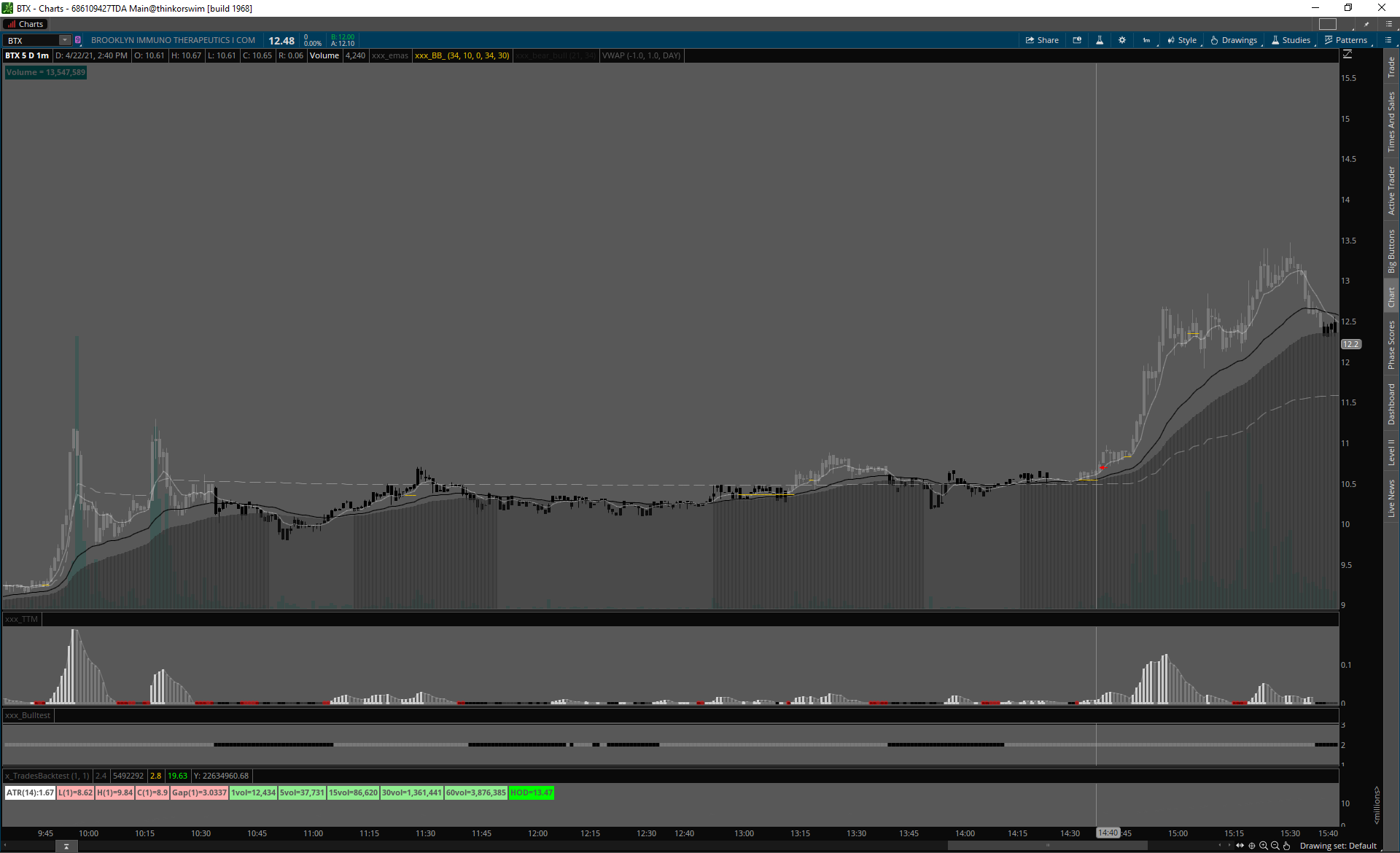 Home príležitosti 22.4.2021 22.4.2021BTX XXII (OCGN GALT) traderskedoupeApril 22, 2021príležitosti Dva signály (a dva predčasné) so slušným follow through. Snáď sa momentum na long stranu vracia po dvoch mesiacoch sucha.BTX nádhera do power hour. Cez 10R od vstupu, prvý signál takéhoto typu po mesiaci a pol.XXII väčší float, nie úplne typický small cap. +- 3R od vstupu.OCGN a GALT luxusné trendy / squeezy. Pre mňa predčasný break (cocaine) btx 22.4.21 xxii 22.4.21 ocgn 22.4.21galt 22.4.21