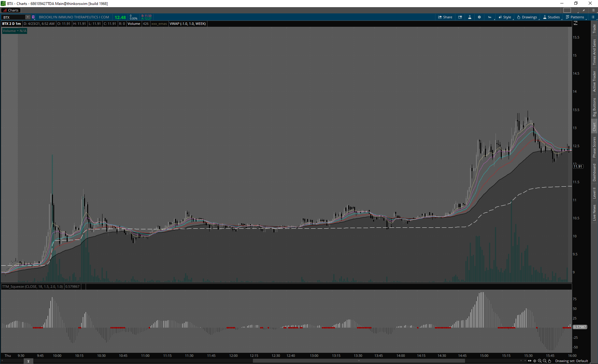 BTX OCGN reclaimy supportov v druhej polovici dňa a dlho neprítomné squeezy do closeu.
