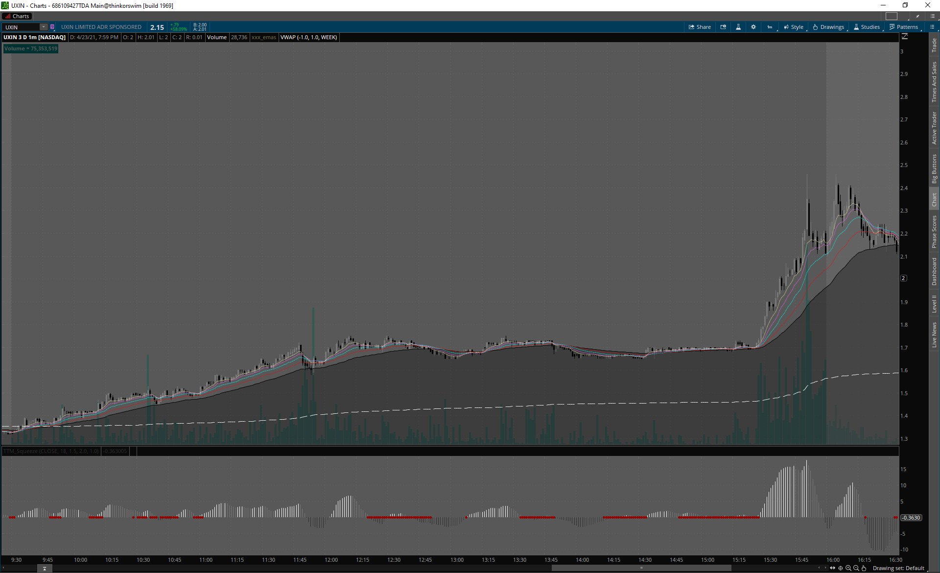 MVIS XXII UXIN DLPN trendujú počas celého dňa, držia zisky do close. Potenciálne day 2 runnere