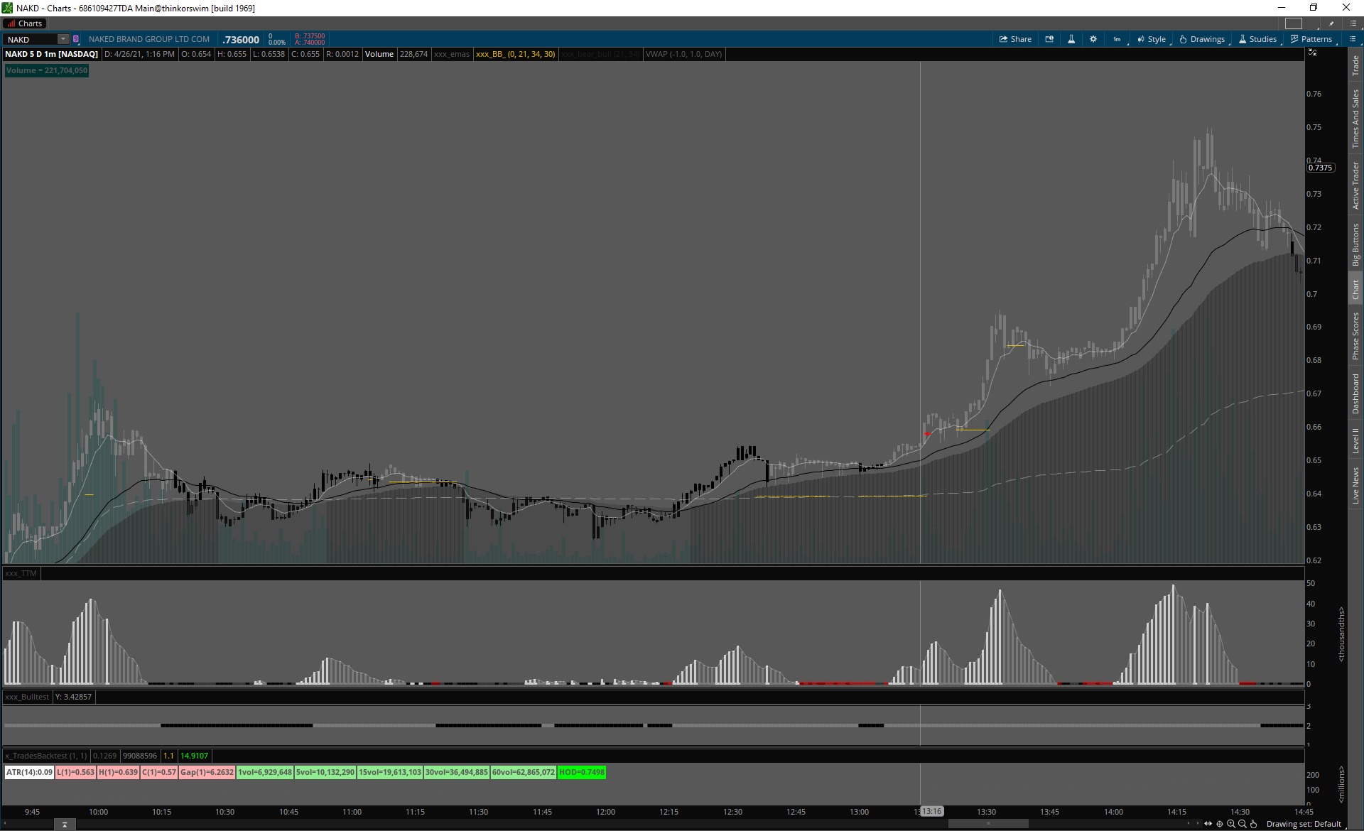 NAKD a NXTD akcie pod dolár, mierne choppy (ako väčšinou tieto centovky), ale follow through takisto slušné.