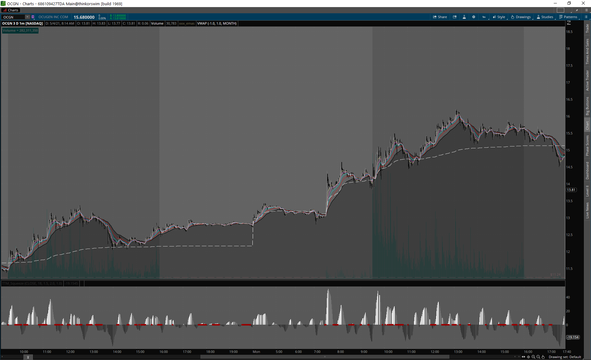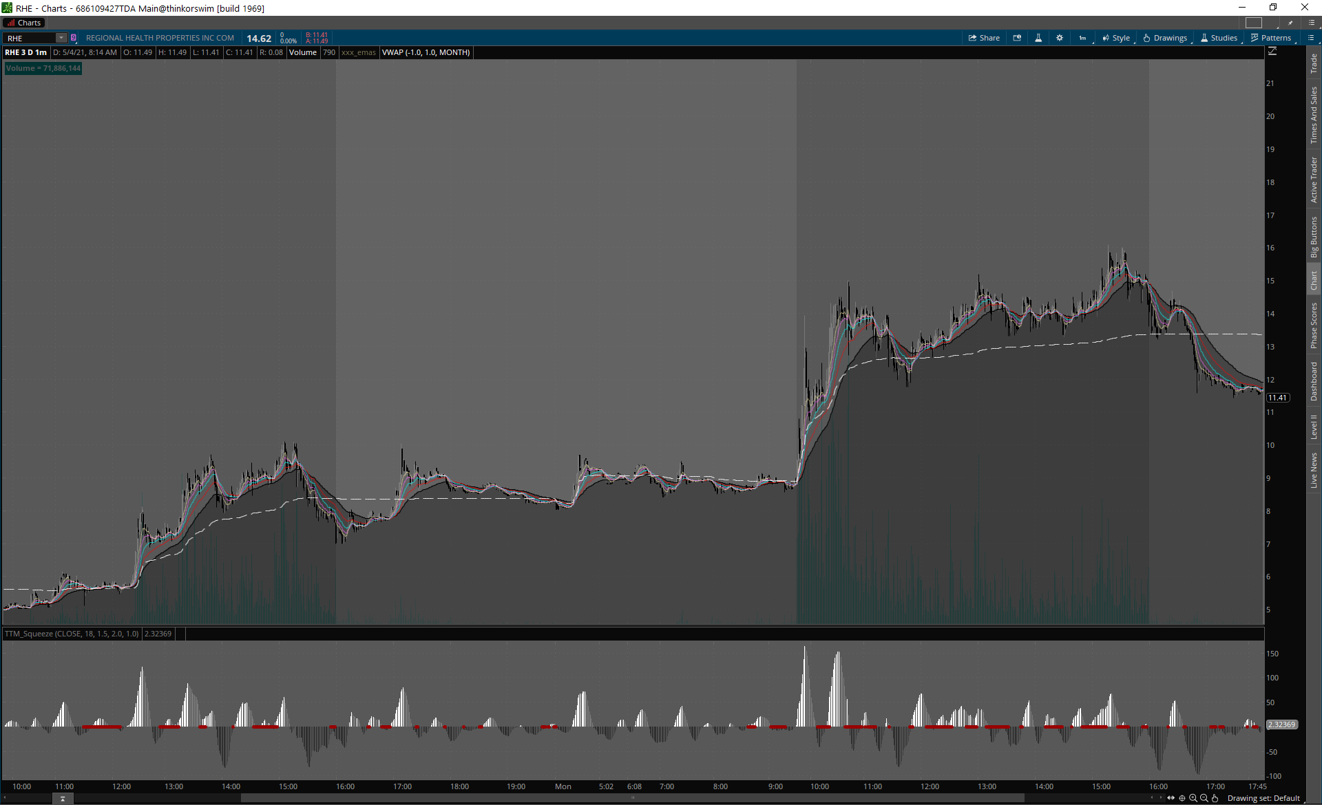 BTX OCGN RHE choppy grafy, ťažko čitateľné. RHE z openu prudká spike a shorty v priebehu pár minút pod tlakom, kde ich udržali do close.