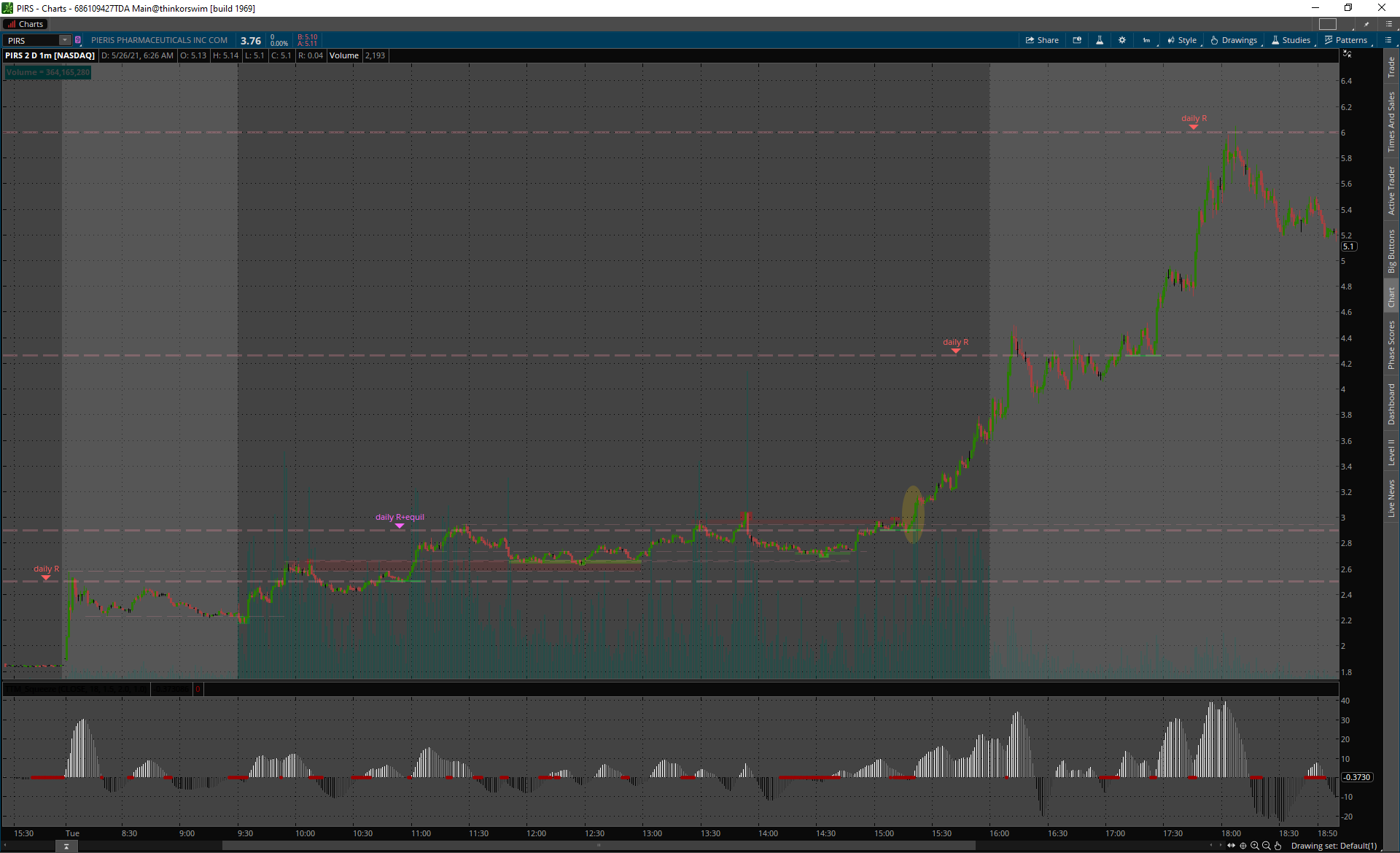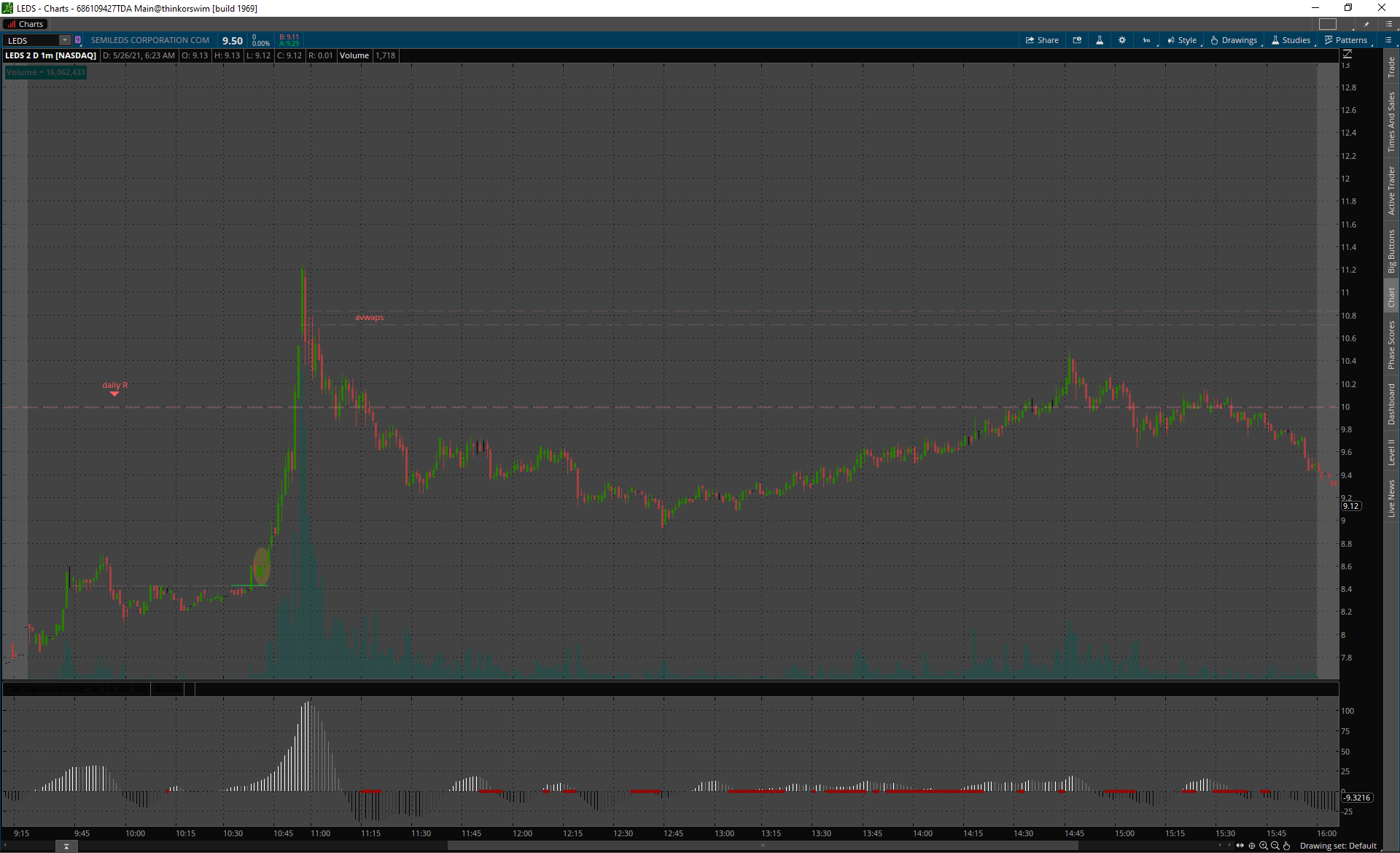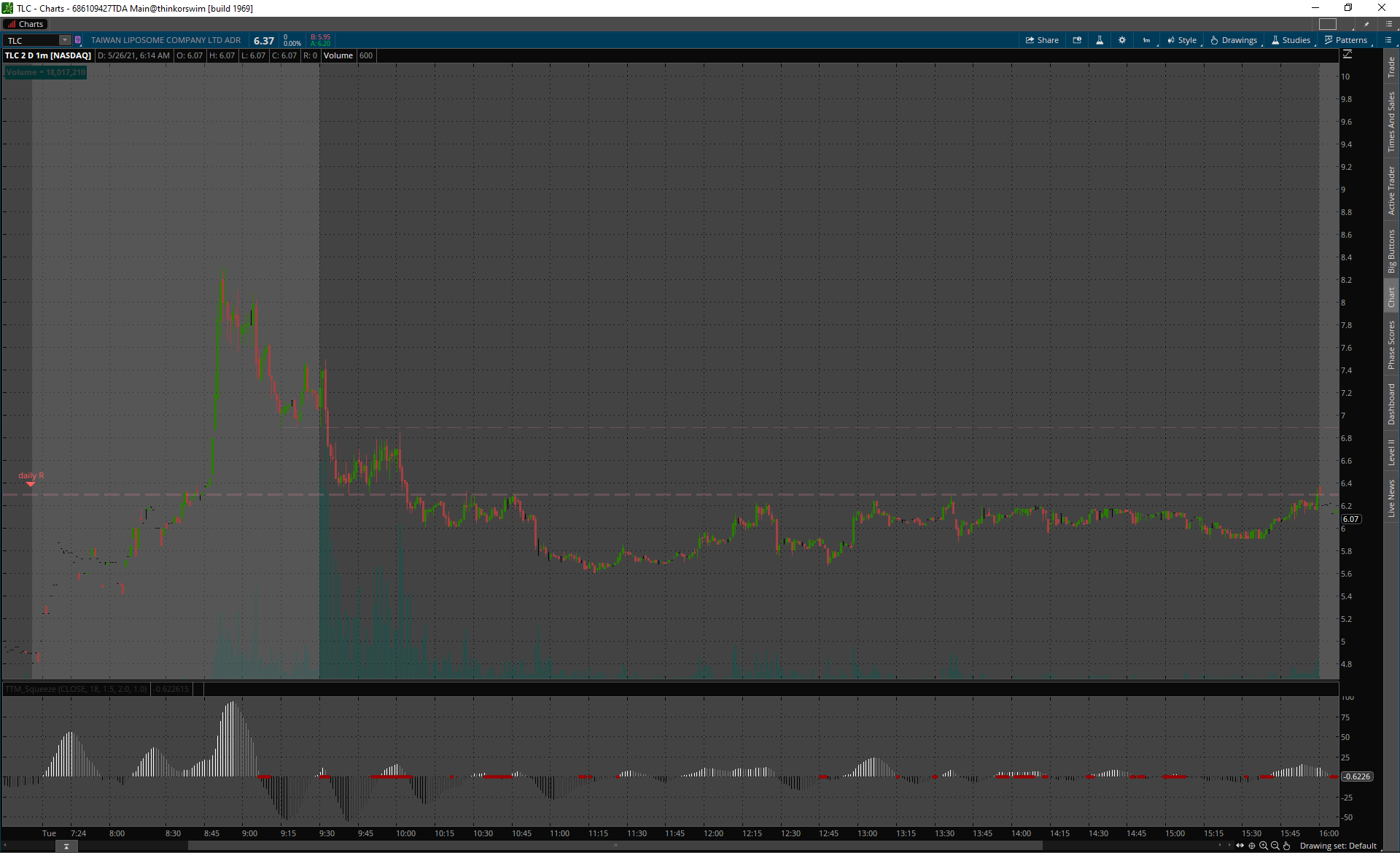 TLC premarket gap up, výplach hneď z openu a all day fade.
