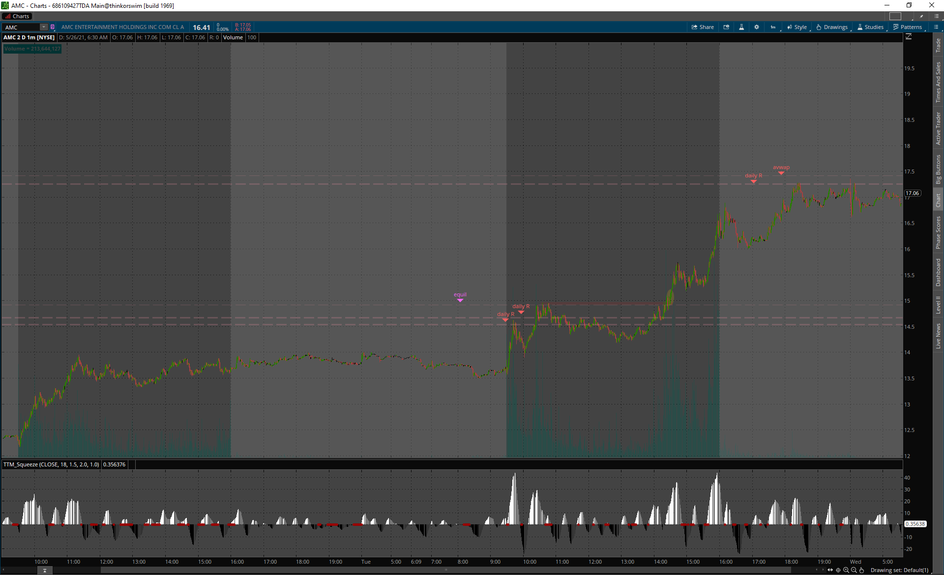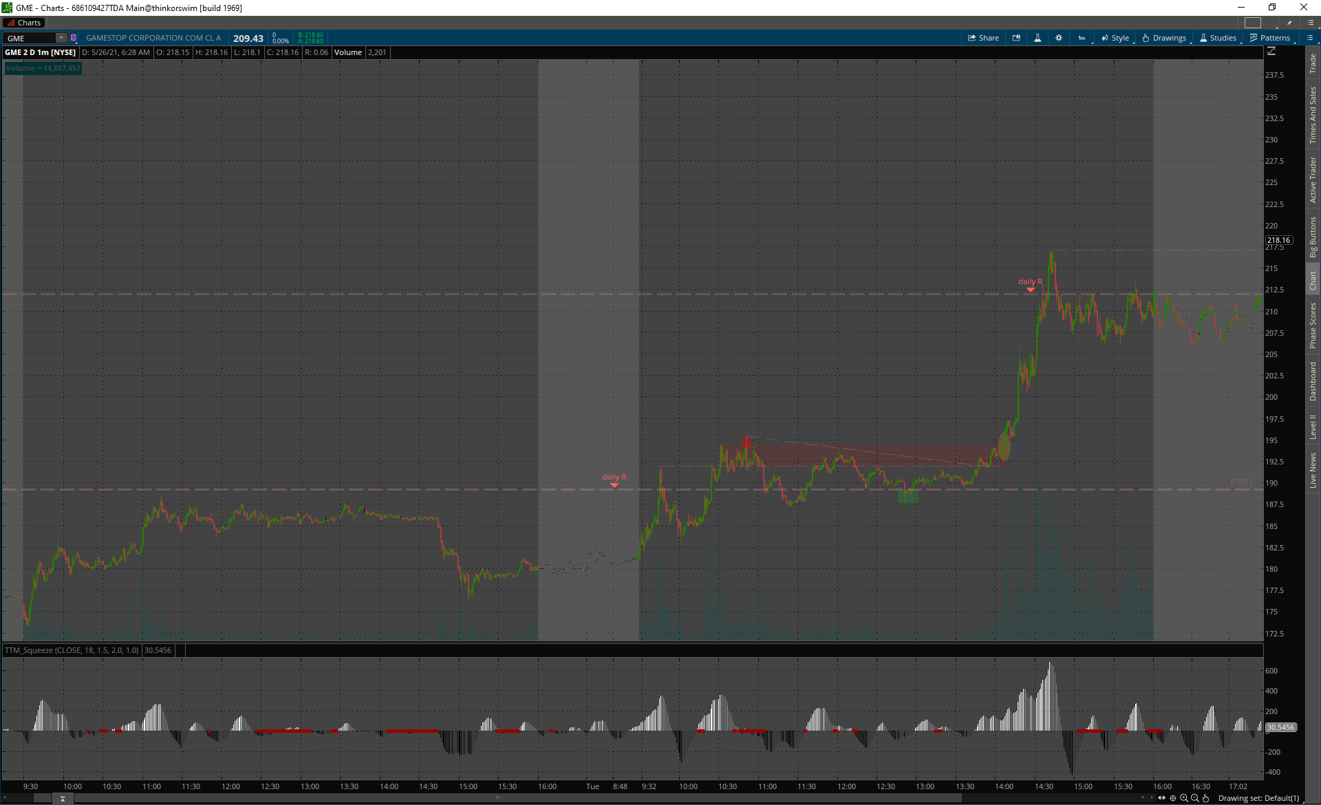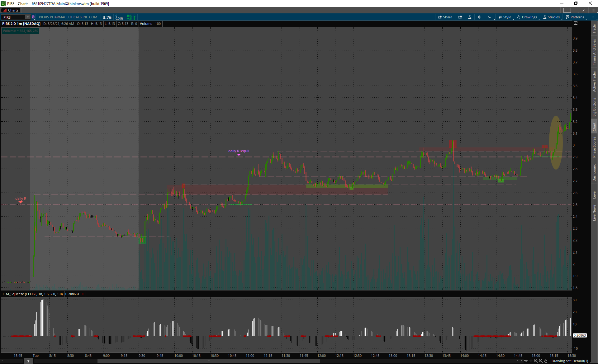 TLC premarket gap up, výplach hneď z openu a all day fade.