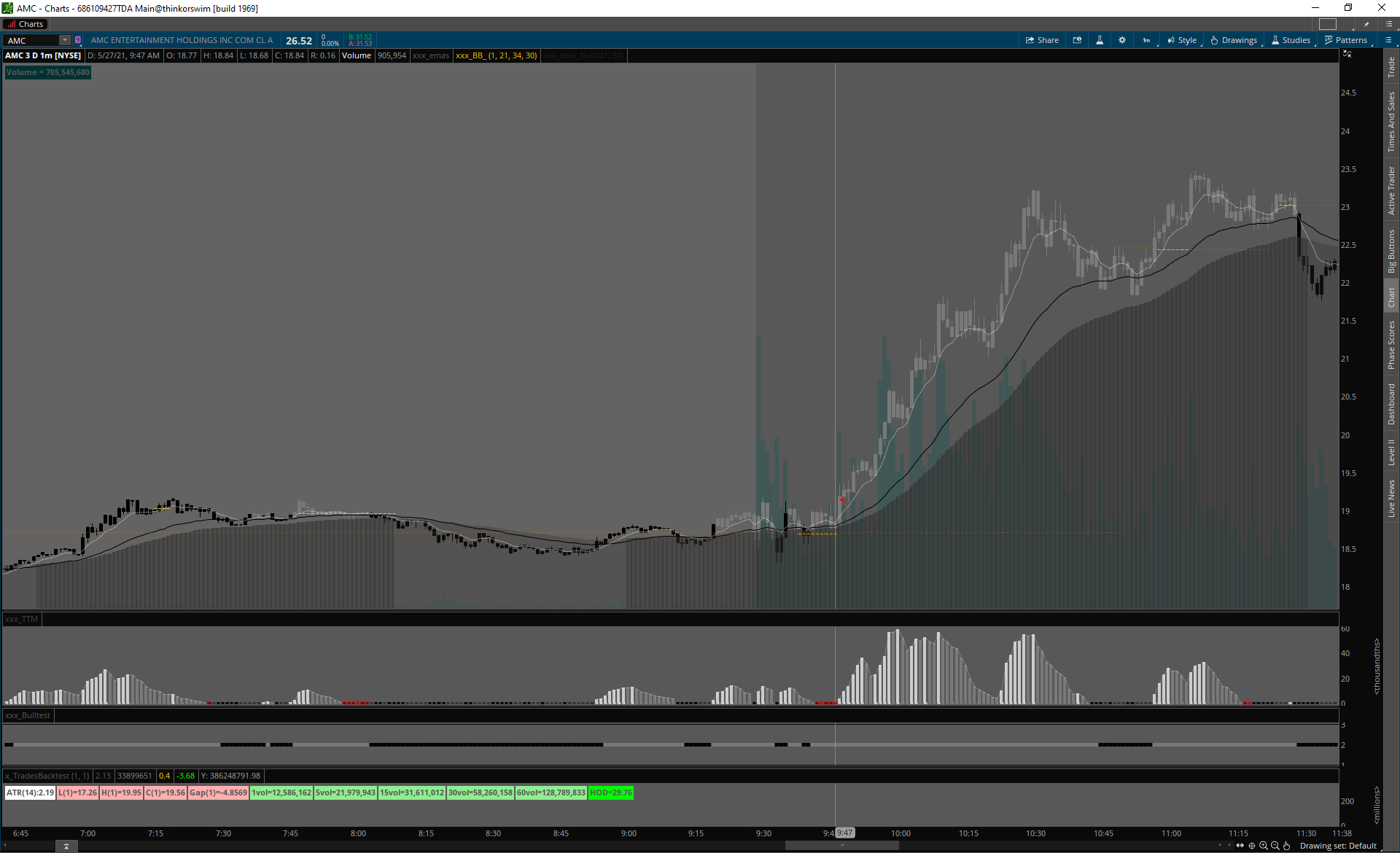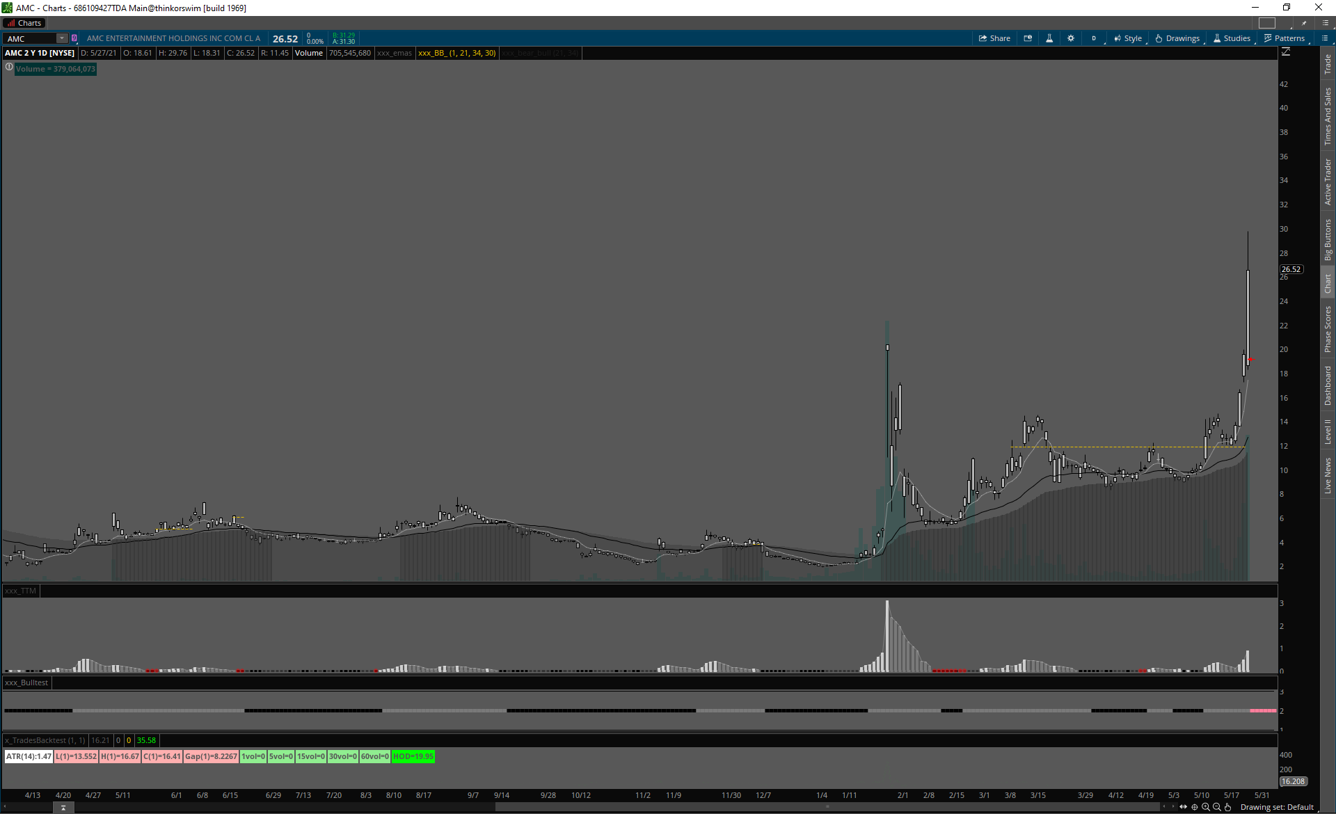 AMC MID CAP, šialené volume, úzke spready, čistý signál.