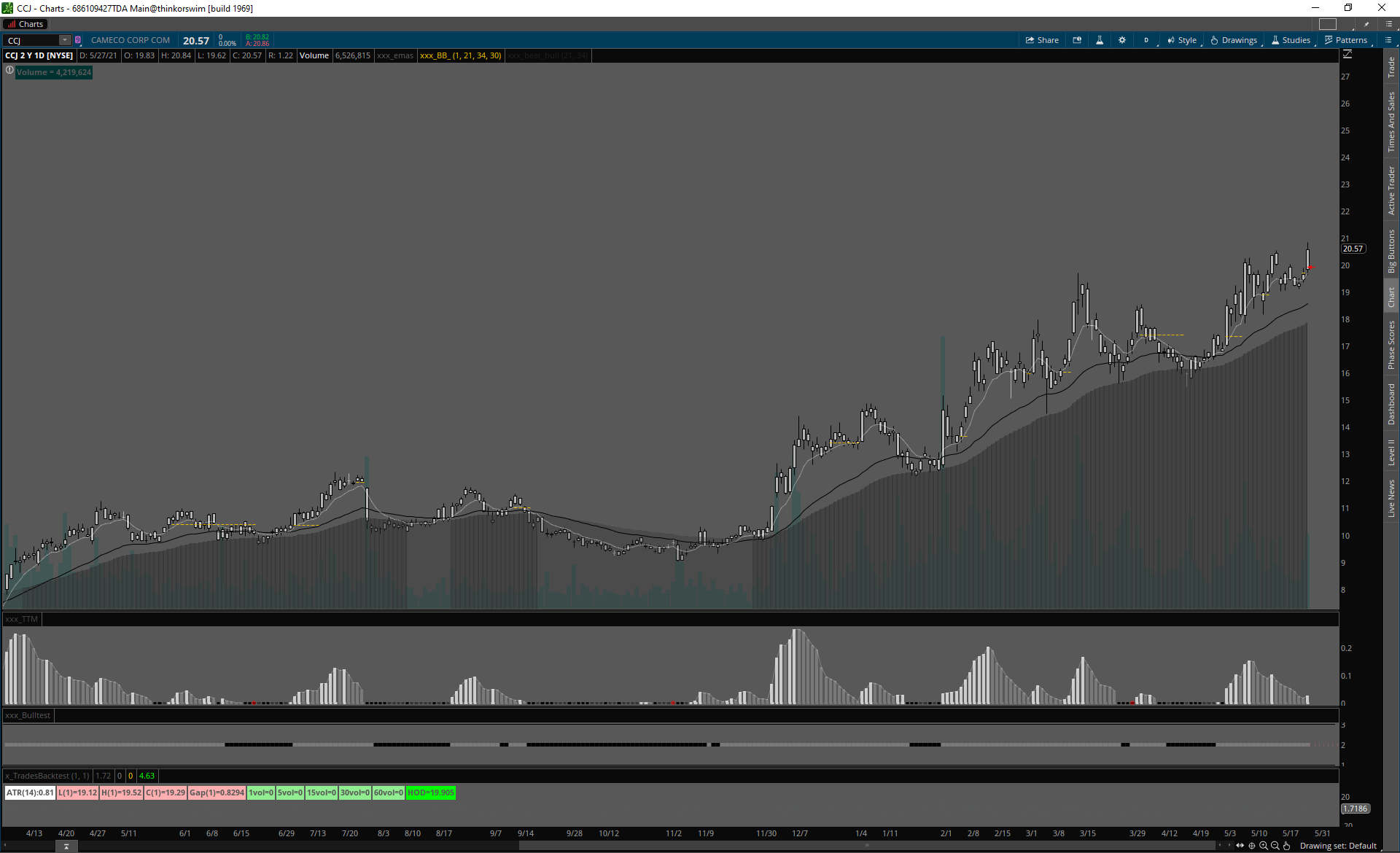 CCJ MID CAP(urán), slabé volume, úzke spready, čistý signál.