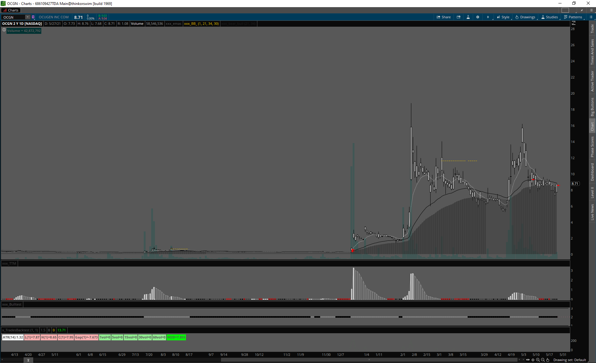 OCGN MID CAP, skvelé volume, úzke spready, čistý signál do aftermarketu.