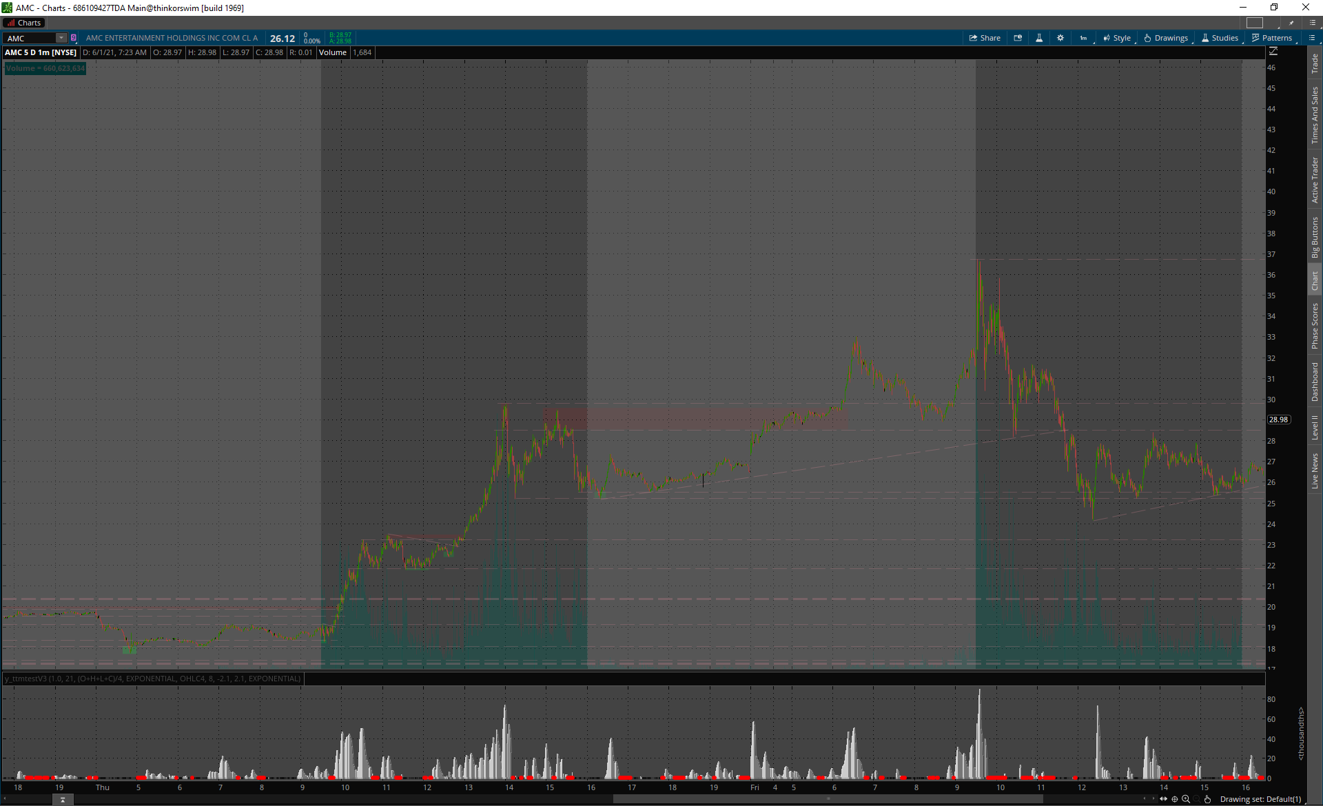 AMC žeby game over? MM sa asi na 20call zapotili, ale vypadá to, že 29+call dostali pod kontrolu. Z openu škaredý stuff do highs a výplach. Pokiaľ sa pokúsia reclaimnúť trend a prepracovať sa na nové highs, asi to bude veľa práce.