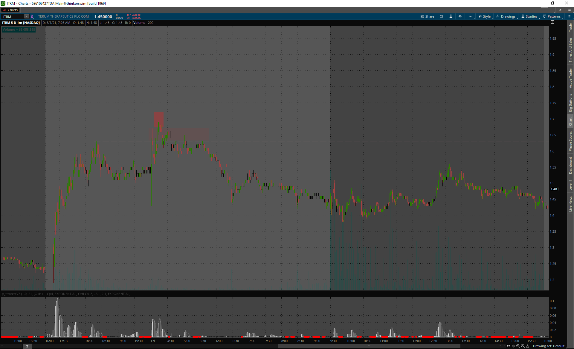 ITRM preobchodovaných 66mio za deň, väčšina akcie v premarkete. Po vyrachnutí shortov cez day highs následoval all day fade a slabý close.