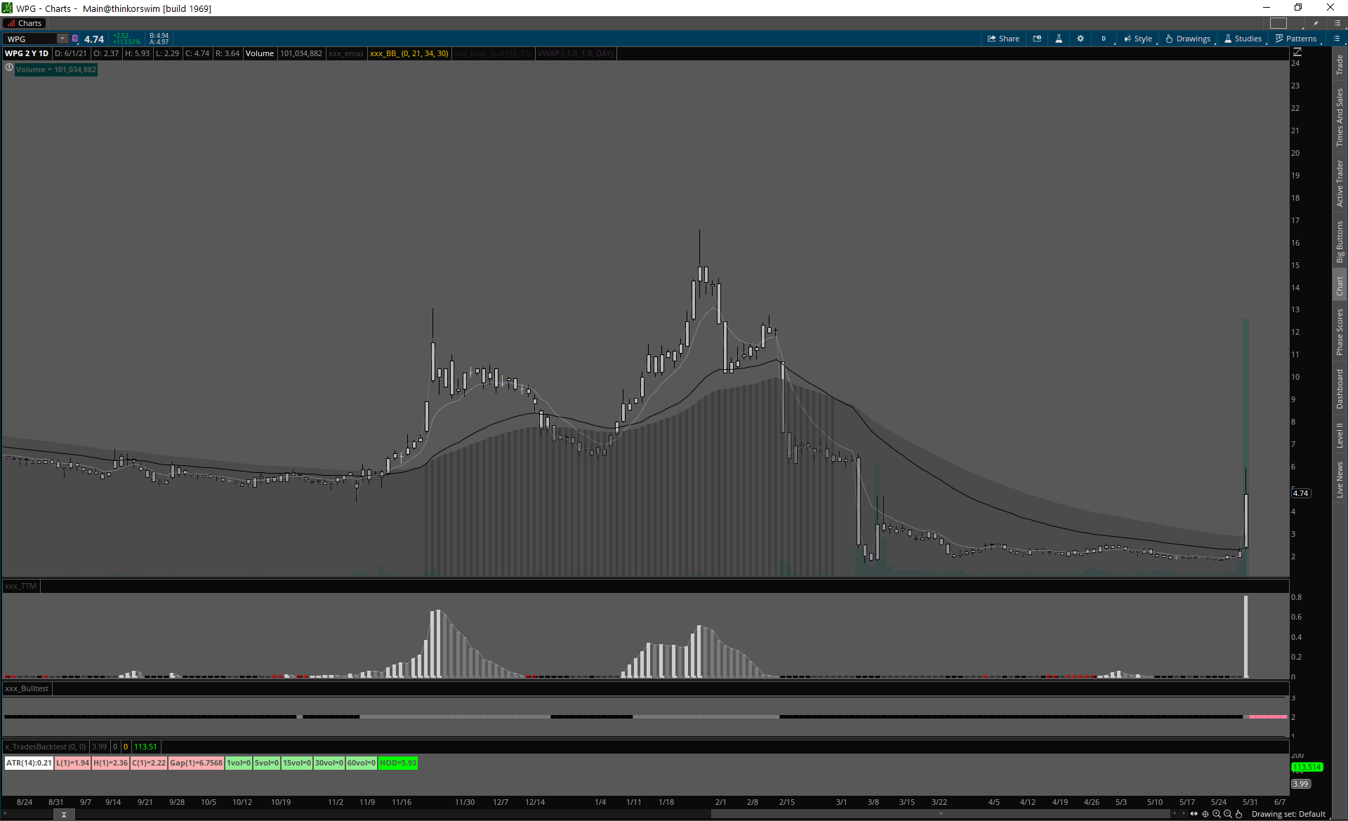 WPG REIT, skvelé volume, úzke spready.