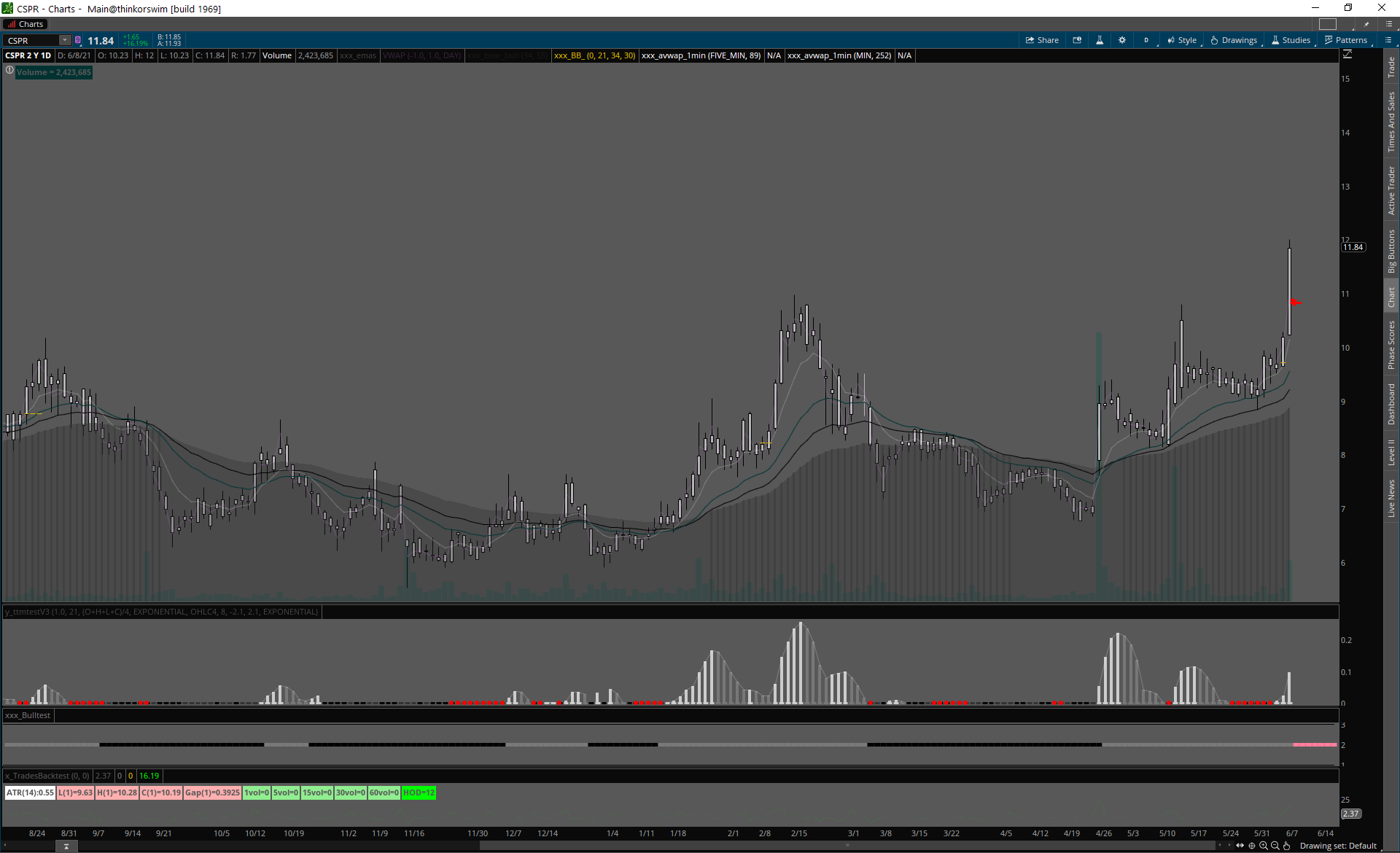 CSPR SMALL CAP, slabé volume, široké spready.