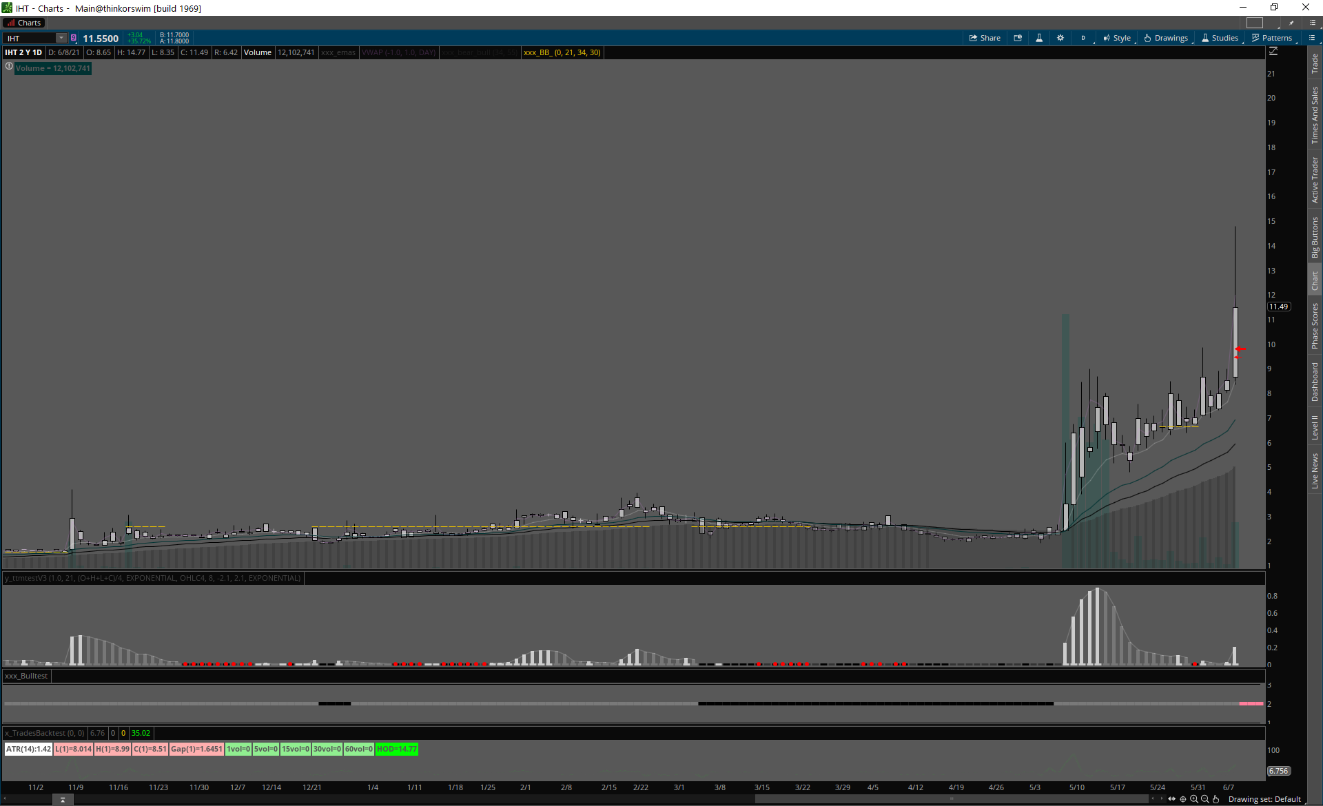 IHT LOW FLOAT, slabšie volume pred breakom, širšie spready pred breakom.