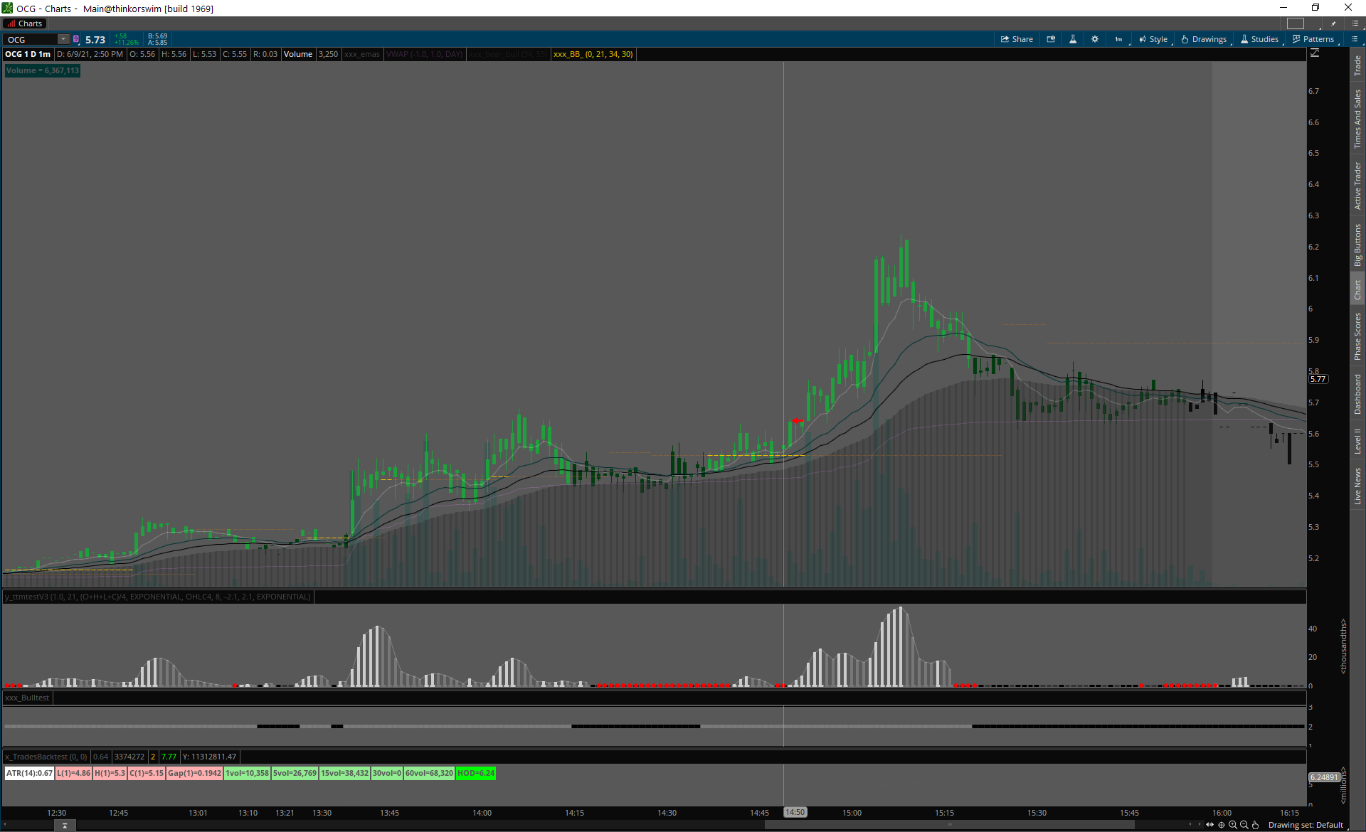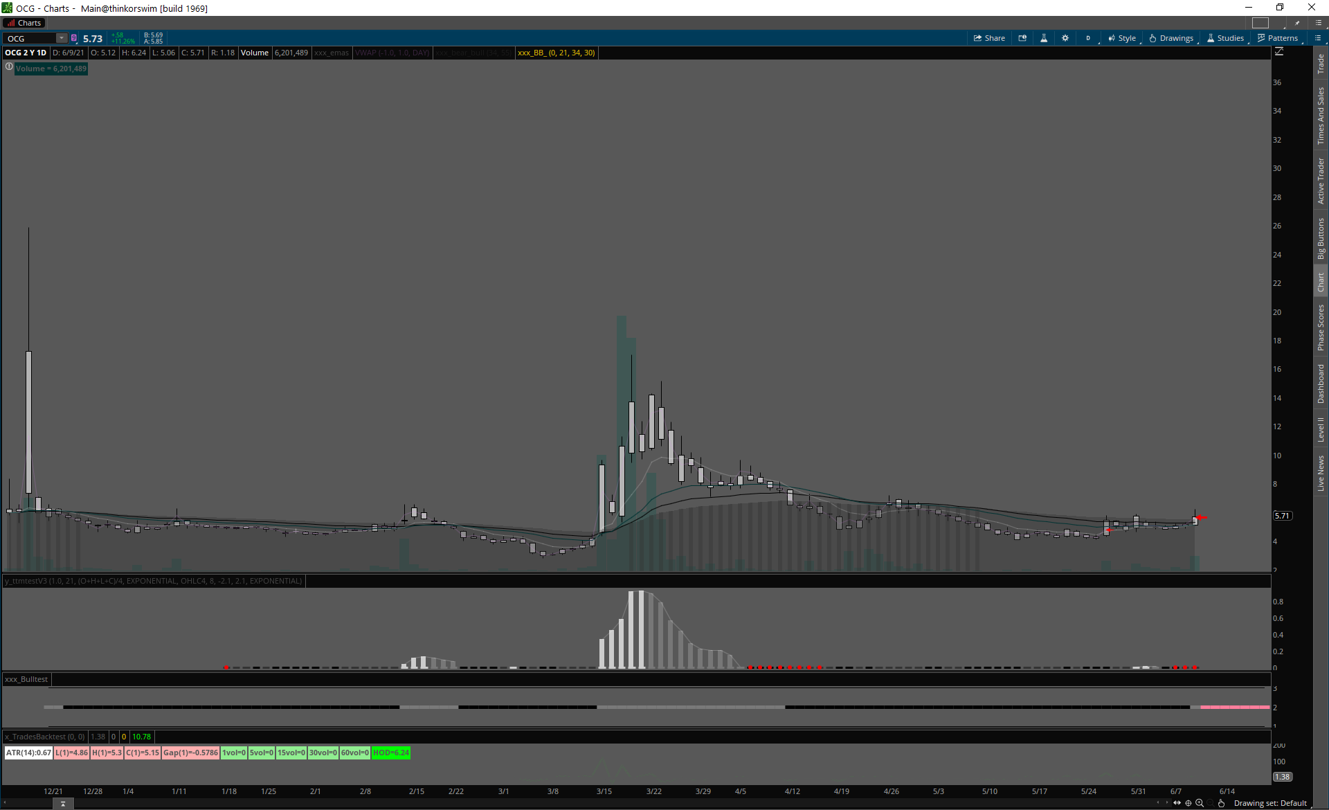 OCG SMALL CAP, ok volume, široké spready, po breaku ešte širšie.