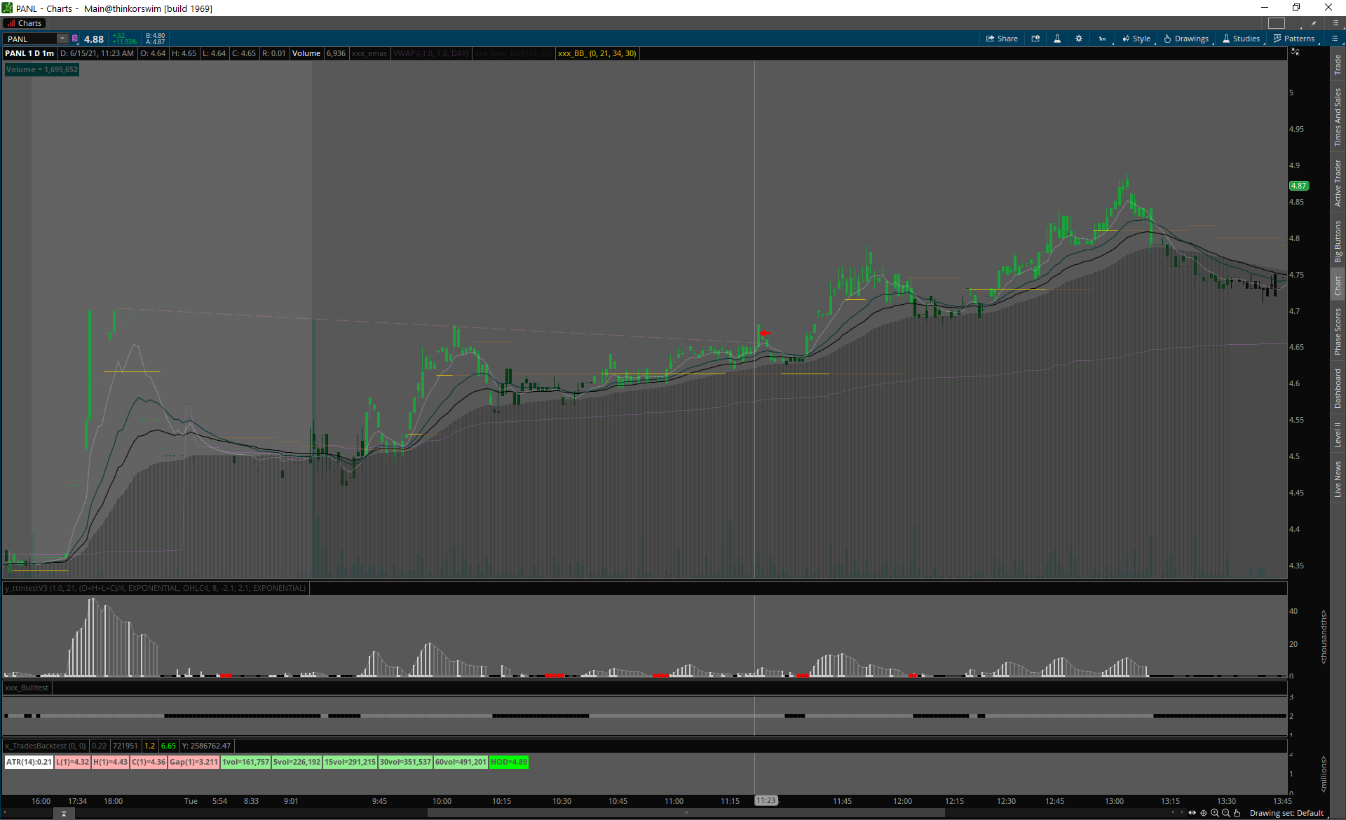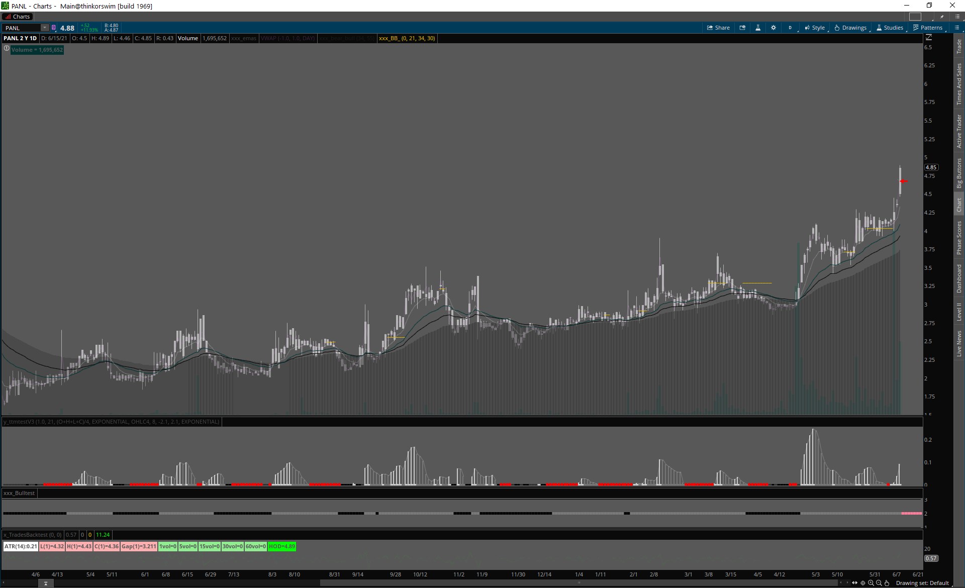 Home príležitosti 15.6.2021 15.6.2021PANL traderskedoupeJune 15, 2021príležitosti Jeden slabý signál. panl 15.6.21panl PANL SMALL CAP, slabé volume (pred aj po breaku), širšie spready. 200mio kapitalizácia, float 27mio.Day 3 pokračovanie breakoutu z daily konsolidácie.