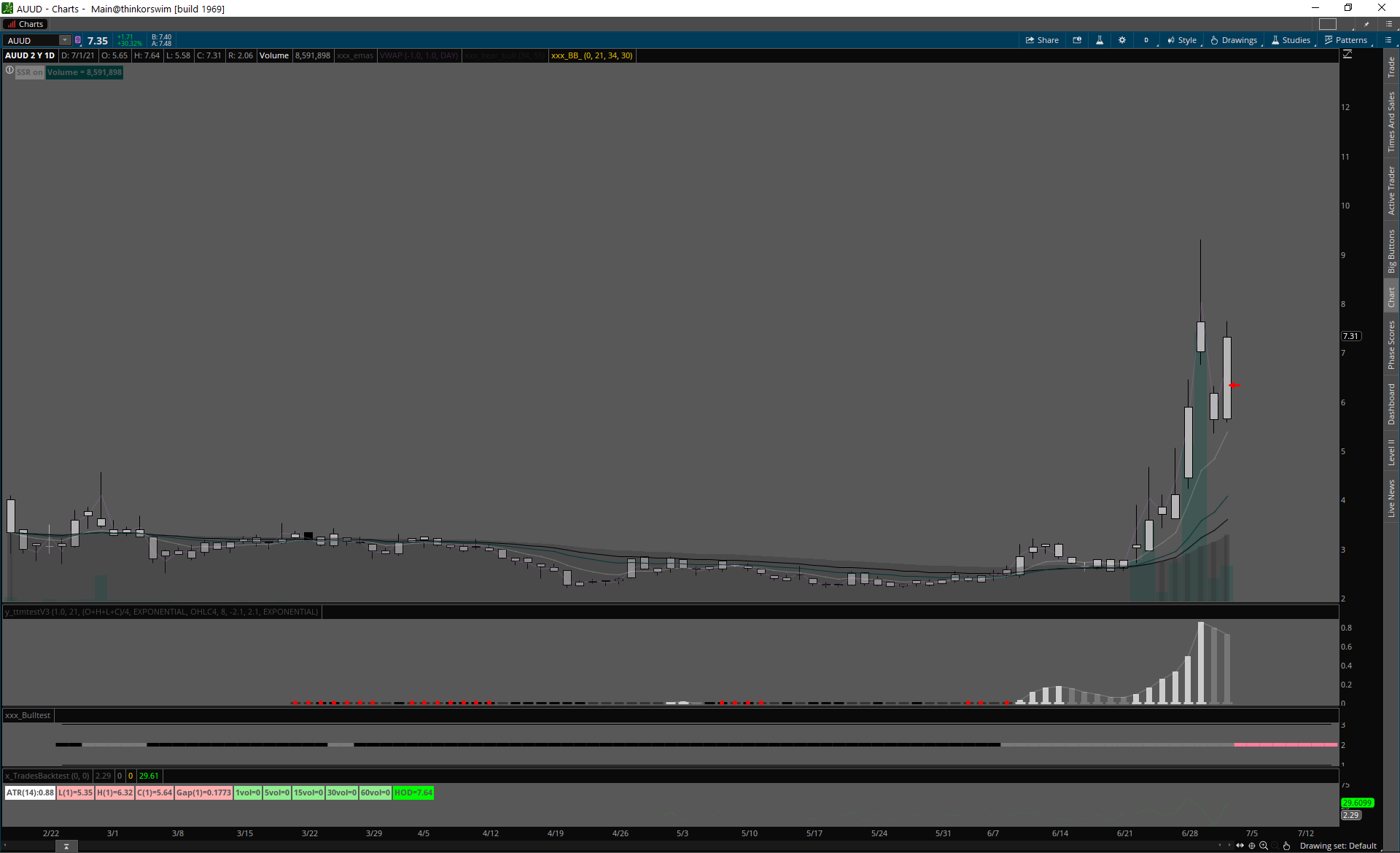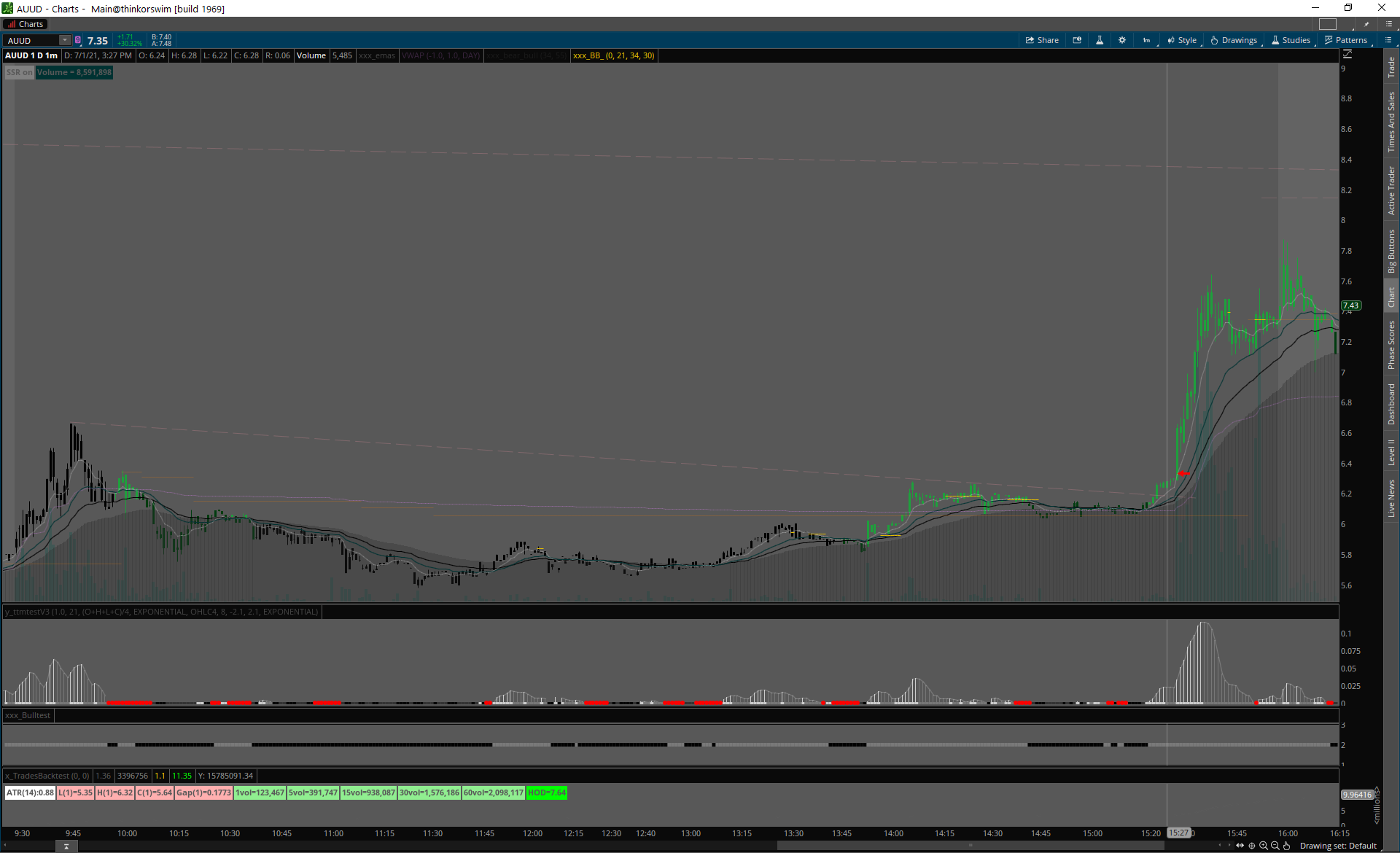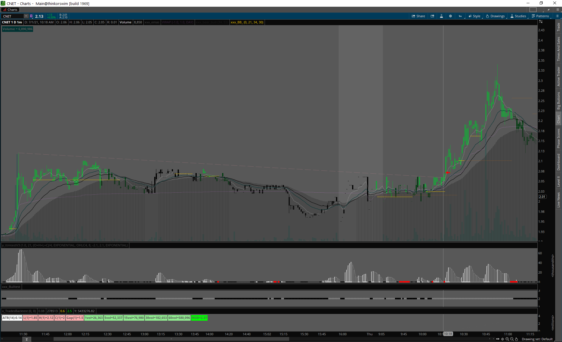 Home príležitosti 1.7.2021 1.7.2021CNET AUUD traderskedoupeJuly 1, 2021príležitosti Dva D- (?) signály. cnet 1.7.21cnet CNET SMALL CAP, bez volume pred breakom, úzke spready. 70mio kapitalizácia, small float 25mio. Signál v rámci dvoch dní. Day 1 pokus o break. auud 1.7.21auud AUUD LOW FLOAT, ok volume, široké spready. 70mio kapitalizácia, low float 8mio.Day 1 bounce v rámci trendu.